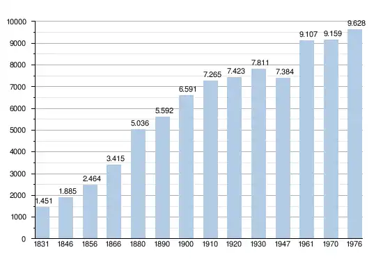 Les chiffres des années 1831 à 1970 tiennent compte des chiffres des anciennes communes fusionnées.