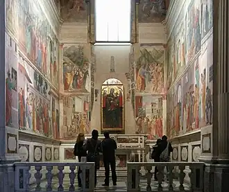 Les fresques de Masaccio dans la chapelle sont sans aucun doute « l'une des réalisations les plus passionnantes de la civilisation figurative de l'Occident »[5], grâce à la spatialité conçue selon les règles d'une perspective cohérente, au réalisme sévère des figures empreintes de profondeur psychologique et de vigueur morale, à la richesse plastique classique à la fois libre et expressive. Cristoforo Landino avait déjà décrit Masaccio comme un « imitateur opiniâtre de [...] nature pure sans ornementation ». La restauration a révélé toute la couleur de l'artiste, pouvant enfin la replacer dans une ligne idéale qui passe par Fra Angelico et pour parvenir à Piero della Francesca, le meilleur de ses héritiers pour la synthèse entre la lumière et la couleur.