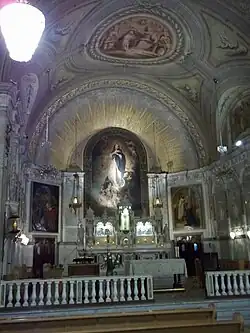 Le sanctuaire et les murs sont faits de marbre blanc avec des incrustations d'or. Le plafond, orné par les huit scènes peintes par François-Édouard Meloche entre 1886 et 1891, illustre la vie de la Vierge[5]. En 1908, la voûte a été redécorée par l'artiste Delphis-Adolphe Beaulieu par un procédé de marouflage, une technique qui permet de conserver de manière presque intacte le décor d'origine[6]. Les fresques de Meloche ont d'ailleurs été remises en valeur en 1998.