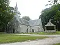 La chapelle est un édifice de la fin du XVe siècle construit en granit et couvert d'ardoises. Elle se compose d'une nef, d'un transept et d'une abside rectangulaire. La façade ouest est surmontée d'un clocheton. Cette façade est percée d'une porte avec anse de panier et accolade. Les grandes fenêtres à meneaux sont de forme ogivale. Les rampants des pignons sont ornés de crochets et d'amortissements sculptés représentant des animaux. Du côté nord, une figure de lutteur pourrait représenter Saint-Cado. Au nord de la nef se trouve la sacristie du XVIe siècle percée d'une fenêtre Renaissance. Près de la chapelle se trouve un petit oratoire du XVIe siècle. Sur les trois faces ouvertes, un mur bahut forme clôture. Un calvaire est adossé à l'oratoire, au-dessus de trois gradins. Le Christ et cinq anges subsistent. Au bas du placître est construite une fontaine du XVe siècle, abritée sous une arcade en anse de panier[1].
