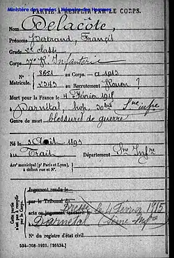 - ↑ « Base des Morts pour la France de la Première Guerre mondiale ».