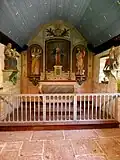 L'oratoire est une petite construction. L'abside est en maçonnerie. Les côtés sont vitrés. La façade est en bois à claire-voie avec balustres. Une inscription indique des restaurations en 1847 et 1885. A l'intérieur de la chapelle, décor de frises sculptées. La fontaine, de la même époque, se compose d'une niche décorée de quatre pinacles et d'une piscine. Elle porte une inscription indiquant qu'elle fut élevée en 1550.
