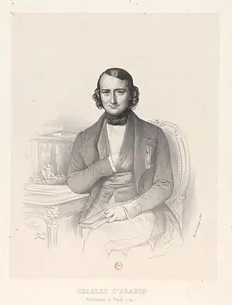 Au Palais Bourbon, le comte d'Aragon soutint de ses votes la cause de la monarchie constitutionnelle, et lui demeura fidèle après la révolution de février. Il suivit constamment la même ligne politique que Thiers, dont il avait été quelque temps le secrétaire.