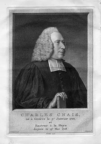 Charles-Pierre Chais (1700-1785) est un pasteur protestant genevois. On lui doit entre autres une traduction de la Bible de l'anglais au français.