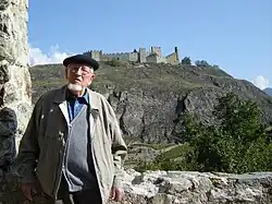 En 2008, posant devant le Monument du Château de Tourbillon de Sion en Valais