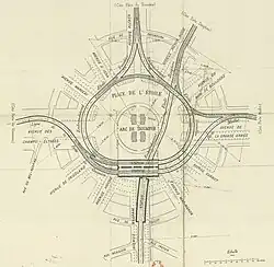 - sur les lignes 1 (entre les stations Argentine et George V) et 6 (précédant la station Kléber), de façon accolée, au nord de l'Arc de triomphe, parallèlement à l'axe historique de Paris ;