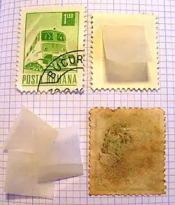 - ↑ (en) « Has Your Stamp Been Regummed? – The Philatelic Foundation », sur www.philatelicfoundation.org (consulté le )