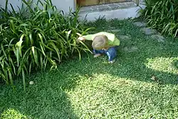 Un enfant jouant à la chasse aux œufs.