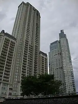 Chacun des immeubles est constitué de trois corps de logis accolés, dont seul le corps central atteint la hauteur de 156 mètres. Les deux ailes latérales culminent à environ mi-hauteur.