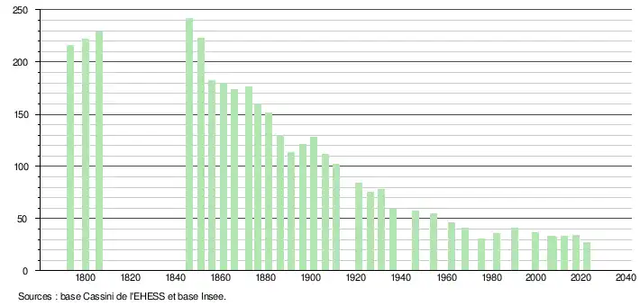 forêts (41,1%), prairies (32,3%), terres arables (26,6%)[12]. L'évolution de l’occupation des sols de la commune et de ses infrastructures peut être observée sur les différentes représentations cartographiques du territoire: la carte de Cassini (XVIIIesiècle), la carte d'état-major (1820-1866) et les cartes ou photos aériennes de l'IGN pour la période actuelle (1950 à aujourd'hui)[Carte 1].