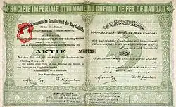 En 1912, la Deutsche Bank acquiert une part de 23,75 % dans la Turkish Petroleum Company, société à capitaux britanniques et néerlandais destinée à exploiter les richesses pétrolières de l'Empire ottoman, ce qui, à terme, devait rentabiliser la construction du chemin de fer.