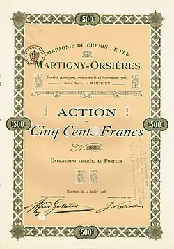 - [1] : octroi de la concession à la Compagnie Martigny - Orsières, autorisée à construire une ligne de chemin de fer à voie normale entre ces deux communes. Il était alors projeté qu'elle débuterait la liaison de Martigny à Turin en passant par, ou sous, le Saint-Bernard.