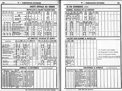 - ↑ Afin de contrer l'offensive allemande de 1918, la Compagnie du Nord est sollicitée pour créer en trois mois une ligne de Feuquières à Ponthoile à double voie et donc à grand débit, hors de portée des canons allemands, afin d'éviter le passage par Amiens. Cette ligne raccorderait celle de Paris à Beauvais, Abancourt et Le Tréport - Mers à la ligne du littoral Abbeville - Boulogne-Ville.