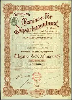 Ces lignes sont déclarées d'utilité publique le [1]. La concession pour l'exécution des travaux et l'exploitation du réseau est attribuée à Messieurs Planche et Brissot qui créent alors une société anonyme: la Compagnie des chemins de fer départementaux du Rhône et de Saône et Loire[2].