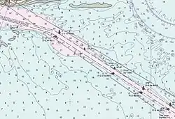 Le chenal est généralement délimité par des balises régulièrement espacées et un alignement d'amers permet de confirmer la bonne position dans le cas où des bouées se seraient déplacées.