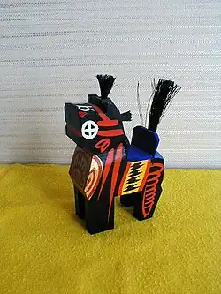 Le crâne de cheval a été une enseigne et un symbole de sorcier[17]. Un tableau de Jacob Cornelisz van Oostsanen, Saul et la sorcière d'Endor (1526), comporte par exemple une sorcière nue chevauchant un crâne de cheval. Le folkloriste russe Alexandre Afanassiev a recensé un conte en ukrainien, La Tête de jument[18], dans lequel une tête de jument frappe à la porte d'une isba de sorcière pour se faire ouvrir par la jeune fille à l'intérieur. Dans une version du conte russe Teremok, les animaux s'installent dans une tête de cheval, que l'ours finira par écraser.
