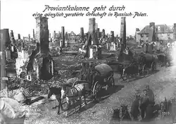 Les puissances centrales doivent faire face aux mêmes problèmes tactiques et de transport que les Russes[El 5]. L’Allemagne a au départ utilisé la cavalerie intensivement, notamment durant une bataille de lanciers contre lanciers avec les Britanniques à la fin 1914[8], et dans un engagement entre la Première brigade de cavalerie britannique et la Quatrième division de cavalerie allemande dans les prémices de la première bataille de la Marne, en septembre 1914. Cette échauffourée se termine « incontestablement par une défaite de la cavalerie allemande », en partie grâce à la batterie L de l'artillerie à cheval[K 3]. Les Allemands arrêtent d'utiliser la cavalerie sur le front de l'Ouest peu de temps après le début de la guerre, en réponse aux changements tactiques et à la modernisation de l'artillerie des forces alliées[El 5]. Ils continuent à s'en servir dans une certaine mesure sur le front de l'Est, notamment dans la reconnaissance du territoire russe au début de l'année 1915[M 2].