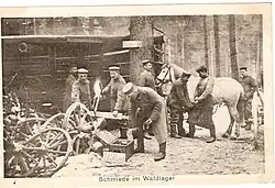 Au début de la guerre, les forces allemandes dépendent autant des chevaux qui tirent leurs cuisines de campagne que des wagons qui apportent les munitions et pièces d'artillerie[K 5]. Le Royal Corps of Signals les utilise pour tirer les chariots, et la promptitude de ses messagers dépend de la vitesse des montures[S 1].