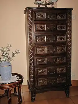 Le semainier est une forme particulière de chiffonnier. Il comporte sept tiroirs, un par jour de la semaine, pour y ranger le linge propre du jour et notamment les sous-vêtements.
