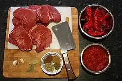 Le chili con carne (« chili à la viande ») est une sorte de ragoût de viande(s) épicé, originaire du Mexique ou d'États des États-Unis, dont les ingrédients essentiels de la variante la plus connue sont la viande de bœuf et le chili.