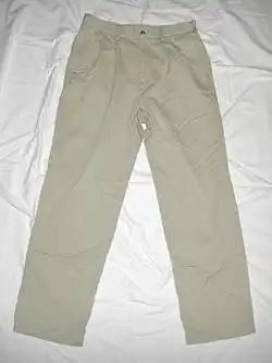 Le chino ou slack est un pantalon en sergé de coton, à l'origine de couleur claire. C'est initialement un vêtement militaire.