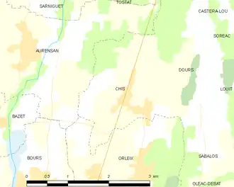 Chis est une commune française située dans le nord du département des Hautes-Pyrénées, en région Occitanie. Sur le plan historique et culturel, la commune est dans l’ancien comté de Bigorre, comté historique des Pyrénées françaises et de Gascogne.