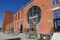 Ce bâtiment industriel en brique rouge d'une longueur d'environ 170 m vaut surtout par son entrée monumentale représentée par une immense rosace en arc outrepassé ornée de vitraux bicolores. Cet arc outrepassé est entouré par une frise représentant un rameau végétal parsemé de fèves de cacao et menant à un écureuil, emblème de la marque Rosmeulen. Cette frise forme un arc brisé.