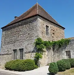 - Le château-bas[46]. Il est réputé avoir été construit au XVIIe siècle. Cependant, il présente sur l'arrière-côté château-haut une entrée à pont-levis qui est surement antérieure. L'édifice a été remanié en 1842. Ce château est aujourd'hui demeure privée.