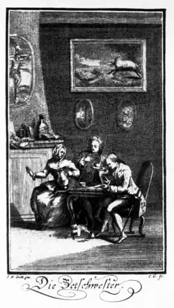 De ses comédies, die Betschwester (la Bigote, 1745), Das Loos in der Lotterie (le Gros Lot, 1746), Die zärtlichen Schwestern (les Tendres Sœurs, 1747), la première seule mérite d’être remarquée ; elle est calquée sur le Tartuffe.