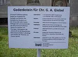 - ↑ (de) Entrée de Christoph Gottfried Giebel sur le site de l'Académie allemande des sciences Leopoldina, consulté le 2. Juli 2022.