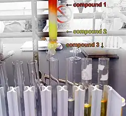 - chromatographie sur colonne : utilisation d'un gel adsorbant sur une colonne ouverte ou fermée en chromatographie en phase gazeuse ou Chromatographie en phase liquide à haute performance.