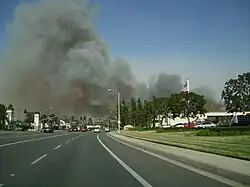 - Du 25 octobre à la fin octobre : le Old Fire cause la mort de six individus, détruit 369,4 km2 du territoire et 993 maisons. Il menace San Bernardino et plusieurs autres communautés, 80 000 personnes évacuent leurs maisons.