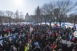 - ↑ François Carabin, « Les manifestants inondent la haute-ville de Québec », sur Le Devoir, (consulté le )