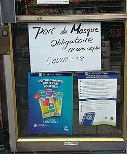 - ↑ Dominique Scali, « Masque obligatoire dans les lieux publics fermés, amendes de 400 $ à 6000 $ pour les commerçants délinquants », sur Le Journal de Québec, (consulté le )
