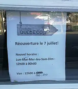 - ↑ Isabelle Paré, Jean-Louis Bordeleau et François Carabin, « Québec serre la vis à l’approche des Fêtes », sur Le Devoir, (consulté le )