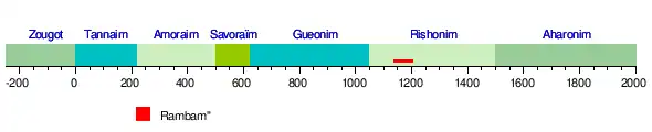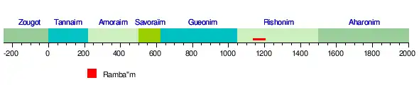 - de 1250 à 1500 s'étend la période des Rishonim, entre celle des Gueonim et celle du Choulhan Aroukh.