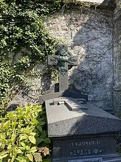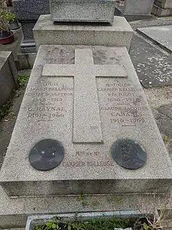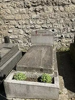 - ↑ dans une tombe appartenant à la famille de sa seconde épouse, les De Mirmont