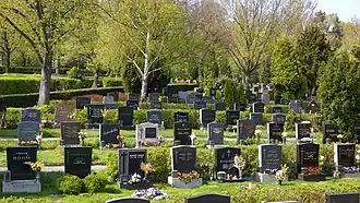 Le cimetière est agrandi en 1875 de 1 815 mètres carrés dans sa partie ouest. Il est doté en même temps d’une nouvelle enceinte et d’un nouveau portail d’entrée. Il est à nouveau agrandi en 1895, mais c’est surtout dans les années suivantes qu’il est aménagé avec des arbres, des allées et des pelouses et agrandi, le quartier étant devenu un endroit élégant. Une chapelle est construite en 1928, agrandie ensuite avec un clocher. Elle est démolie pour laisser la place à un bâtiment moderne en 1967 qui sert de salle funéraire.