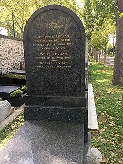 - ↑ Registre journalier d'inhumation du cimetière parisien de Bagneux (BAG_RJ19481949_01 p. 190, numéro d'ordre 3789).