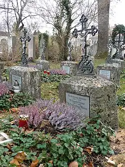 Quelques personnalités y sont inhumées comme Eugen Roth, Eugen Jochum ou Bernhard Wicki. On y trouve aussi le carré commun des sépultures des religieuses dites « demoiselles anglaises » (Englische Fräulein) de la congrégation de Maria Ward. Le couvent et l'école de la congrégation se trouvent juste à côté.