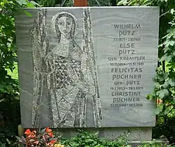 À l'entrée du cimetière se trouve une plaque commémorative apposée sur le bâtiment du cimetière pour le sculpteur August Drumm avec un relief en bronze représentant une tête de Christ créée par l'artiste lui-même en 1902. Drumm avait sa tombe dans le cimetière de Solln, mais elle été relevée et a donc disparu[1].