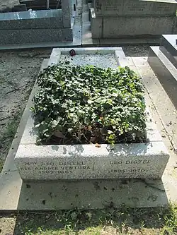 - ↑ La sépulture familiale (il est inhumé avec son père, sa mère et son fils Georges) était initialement située dans la 20e division (sous le boulevard périphérique). Elle a été restaurée et déplacée en .