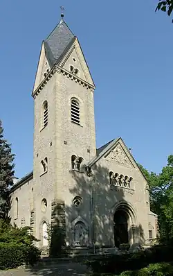En 1903, la communauté fait construire une chapelle de cimetière. Jusque-là, elle utilise les installations du cimetière Louise III. Une conception de l'urbaniste Otto Hetzel (de) est réalisée (une partie de la paternité de Schwechten peut être trouvée dans la littérature n'est pas correcte). Hetzel conçoit la chapelle dans un style roman, avec des éléments de lettrage décoratifs présentant des éléments Art nouveau. La chapelle est inaugurée le 27 septembre 1903[5].