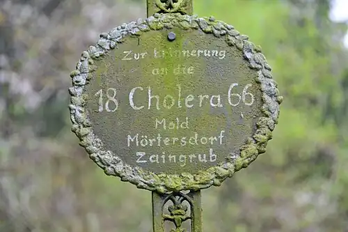 Le cimetière se trouve à l'est de Maria Dreieichen et n'est accessible qu'à pied. Il se pourrait qu'un four à briques se soit trouvé à proximité immédiate, car les registres de la paroisse de Maria Dreieichen mentionnent le "cimetière du choléra près du four à briques ou Ziegelstadel" comme lieu d'inhumation. Sur cette petite surface se trouvent plusieurs tombes avec des croix forgées, seule une pierre tombale en granit se trouve à l'arrière. Une pierre commémorative se trouve au centre du cimetière. Toutes les personnes inhumées sont mortes en 1866 et ont été enterrées au cimetière du choléra entre le 8 août 1866 et le 15 octobre 1866 ; il s'agit de 22 personnes de Mold, 13 de Mörtersdorf et 4 de Zaingrub. Depuis cette époque, le cimetière est entretenu et fleuri par des catholiques.
