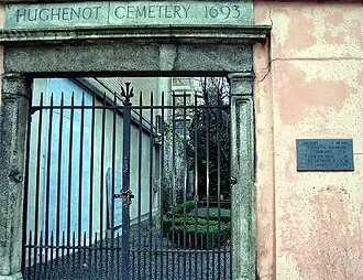 Le cimetière huguenot de Dublin est situé sur Merrion Row dans le centre de Dublin à proximité de St Stephen's Green. Il a été créé en 1693 et rassemble les tombes de 239 huguenots français émigrés en Irlande. Il existe un poème d'Eavan Boland, The Huguenot Graveyard at the Heart of the City.