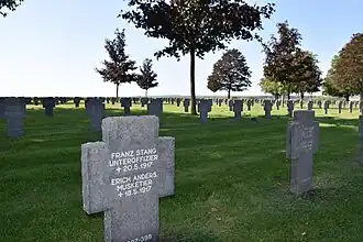 Le cimetière militaire allemand se situe sur le territoire de Cerny-en-Laonnois, à proximité du mémorial du Chemin des Dames.