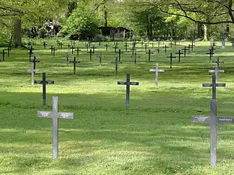 Le cimetière rassemble 5 010 corps, dont 3 257 inhumés dans des tombes individuelles matérialisées par des croix en métal (dont deux non-identifiés) et 1 753, dont 179 sont identifiés, inhumés dans deux ossuaires. Quatre travailleurs civils sont enterrés dans ce cimetière[1].
