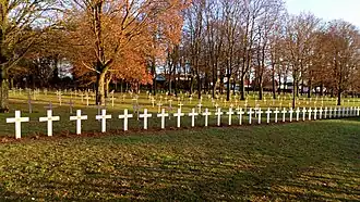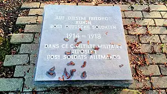Ce cimetière compte 8 051 corps dont 4 351 inhumés dans des tombes individuelles, 237 de ces corps n'ont pas pu être identifiés. Ces tombes sont matérialisées par des croix de métal. Sous chaque croix noirs repose en général 4 soldats, comme cela se faisait habituellement dans les cimetières militaires allemand[2].