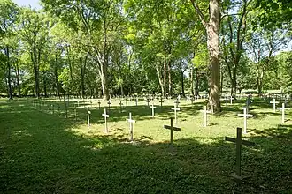 Ce vaste cimetière est agrémenté de nombreux arbres. Il comporte les tombes de 31 939 soldats allemands, parmi lesquels 7 069 ont une tombe individuelle et 24 870 (dont 11 587 inconnus) sont inhumés dans une vaste fosse commune.