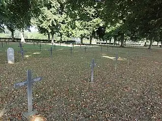 Le cimetière compte 7 526 dépouilles de soldats allemands dont 3 533 reposent dans des tombes individuelles matérialisées par des croix en pierre (46 corps n'ont pas pu être identifiés) en pierre) et 3 993 corps reposent dans l'ossuaire (3.080 ne sont pas identifiés à ce jour)[1].